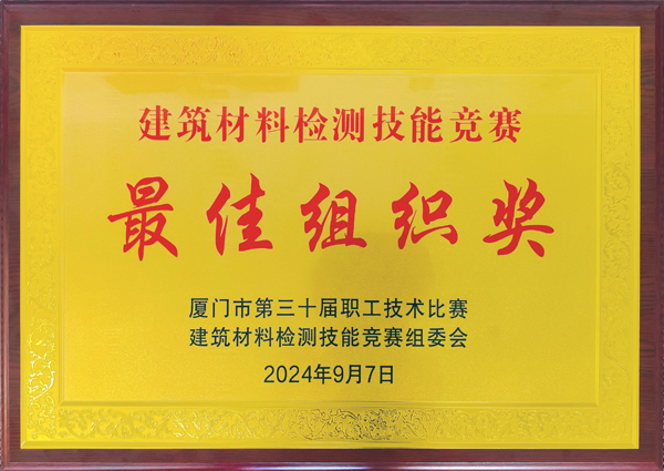 廈門市第三十屆職工技術比賽建筑材料檢測技能競賽獲評“建筑材料檢測技能競賽最佳組織獎”
