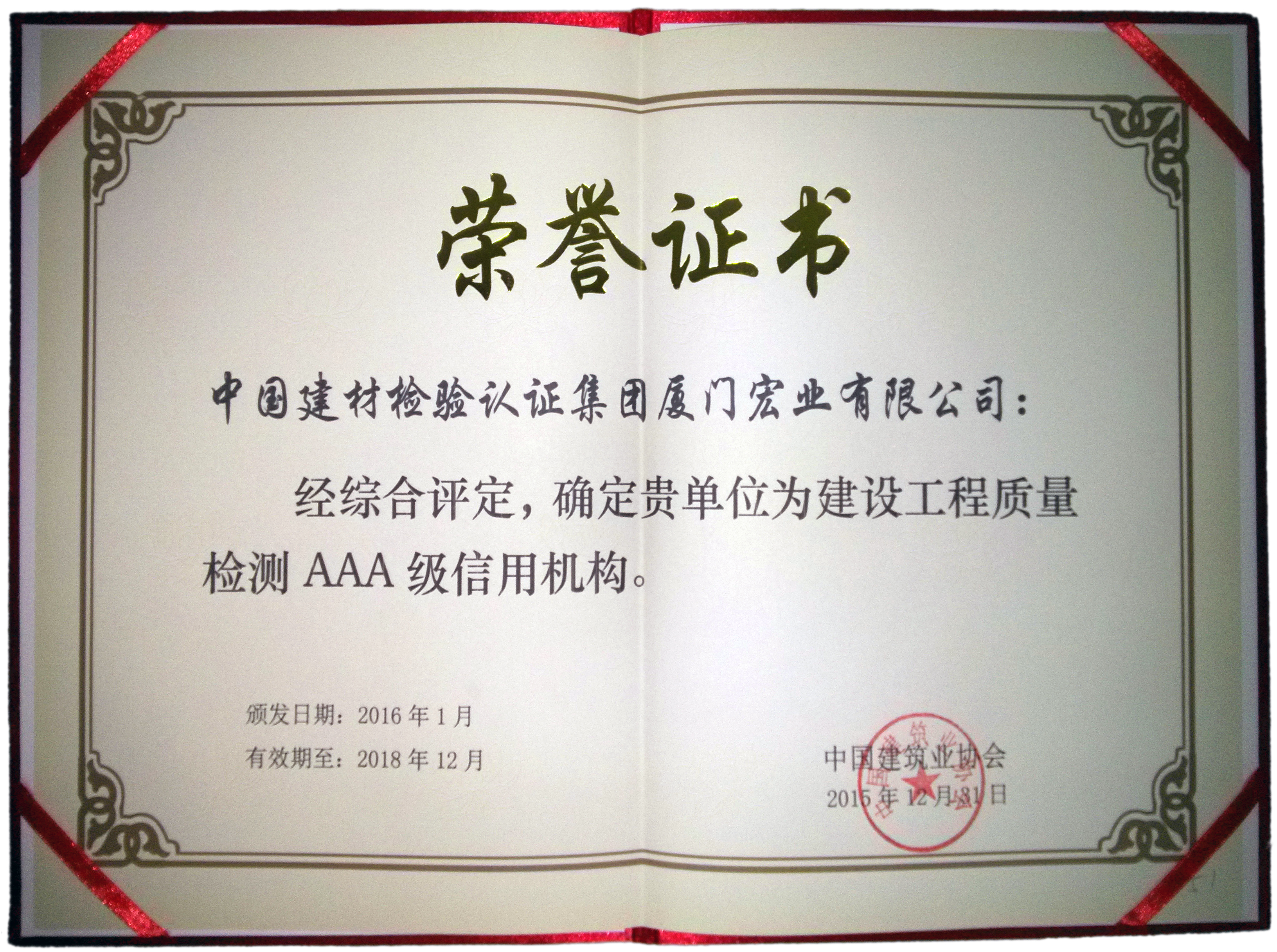 近日,中國(guó)建筑業(yè)協(xié)會(huì)工程建設(shè)質(zhì)量監(jiān)督與檢測(cè)分會(huì)表彰公布了2015年度全國(guó)建設(shè)工程質(zhì)量檢測(cè)AAA級(jí)信用機(jī)構(gòu)名錄,經(jīng)綜合評(píng)定,中國(guó)建材檢驗(yàn)認(rèn)證集團(tuán)廈門宏業(yè)有限公司(以下簡(jiǎn)稱CTC廈門宏業(yè))被評(píng)為“建設(shè)工程質(zhì)量檢測(cè)AAA級(jí)信用機(jī)構(gòu)”。此次中國(guó)建筑業(yè)協(xié)會(huì)本著公開、公平、公正的原則,在全國(guó)工程質(zhì)量檢測(cè)行業(yè)共評(píng)選出101家AAA級(jí)信用等級(jí)的檢測(cè)機(jī)構(gòu),福建省僅有5家檢測(cè)機(jī)構(gòu)獲此殊榮。